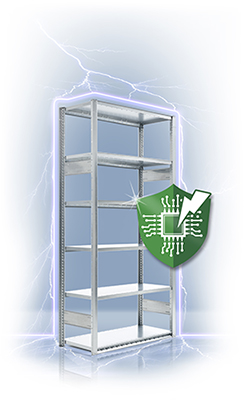 Hyllystöllä on maadoitettuna erittäin matala resistanssi maahan. Johtavuuden ansiosta staattiset varaukset eivät voi kerääntyä hyllyyn, kun se on maadoitettu, ja hyllyyn asetetuista, staattisesti varautuneista esineistä varaus purkautuu hallitusti. Hyllykköä voidaan tästä syystä käyttää ESD-herkkien laitteiden säilytykseen, jos ne on sijoitettu asianmukaisiin, antistaattisiin pakkauksiin.